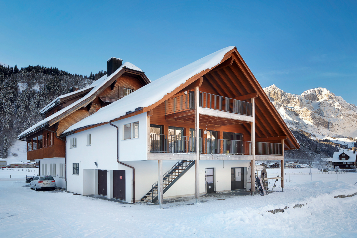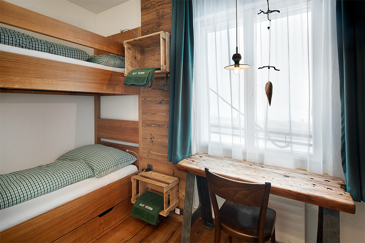 Der Hausteil Horn bietet für 18 Personen Schlafplätze. Die Mindestteilnehmerzahl beträgt 14 Personen. Auf Wunsch kann das Bödmen-Zimmer zu diesem Hausteil gebucht werden. In diesem Fall beträgt die Mindestteilnehmerzahl 24 Personen, maximal können wir so 32 Personen beherbergen. Wir empfehlen unseren Kunden diesen Hausteil mit max. zirka 20 Personen zu buchen, da er über eine wesentlich kleinere Küche verfügt. Dieser Hausteil ist rollstuhlgängig.