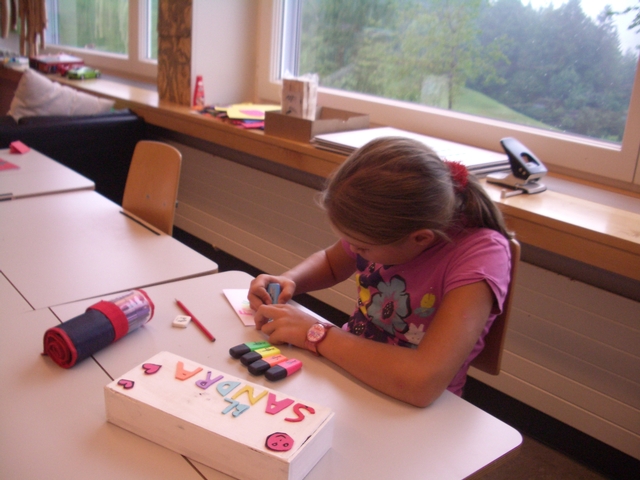 Die Kleine Wanderung bestand aus einer Schatzsuche. Man musste Schatztruhen mit Buchstaben suchen und daraus ein Lösungswort basteln, doch nur eine Gruppe schaffte es. Die Schatzsuche endete beim Herzlisee. Dort gab es einen Barfussweg, der uns immer wieder durch das eiskalte Wasser des kleinen Sees führte. Fast alle wagten das Abenteuer. Nach dem Abstieg nach Ristis spielten wir lange auf dem Alpenspielplatz.