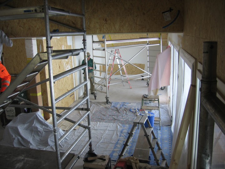 Die Arbeiten im Haus sind mehr oder weniger abgeschlossen. Klar, gibt es noch ein paar Details, welche noch erledigt werden müssen: So zum Beispiel der Spiegel im neuen Bad, Bilder im Ideen-Reich und auch die Stromer sind mit der Brandmeldeanlage nicht ganz fertig.