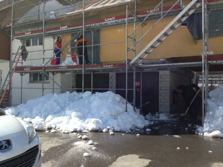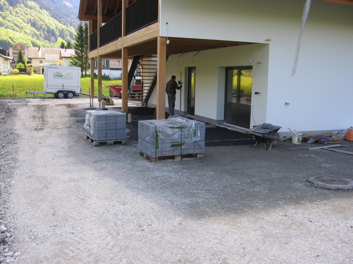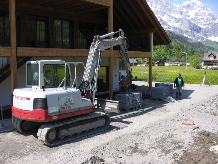 Momentan wird fleissig an der neuen Umgebung gearbeitet. Die Gärtner haben trotz Schnee mit ihren Arbeiten gestartet und sind Sickersteine am Verlegen. Auch die Stützmauer Richtung Engelberg steht bereits. Aus unserer Sicht dürfte der Sommer nun langsam kommen, damit dann das Gras auch wachsen kann und sich nicht die Wurzel abfriert.