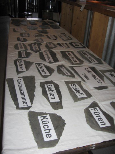 Ach so, das hätten wir noch fast vergessen: Dem lieben Sämi raten wir, bevor er das erste Türschilder mit dem Hochleistungsleim an die Türe klebt, um Carmen zu zeigen wie es geht, soll er den Layoutplan des Ferienhauses studieren. Keinen weiteren Kommentar dazu…